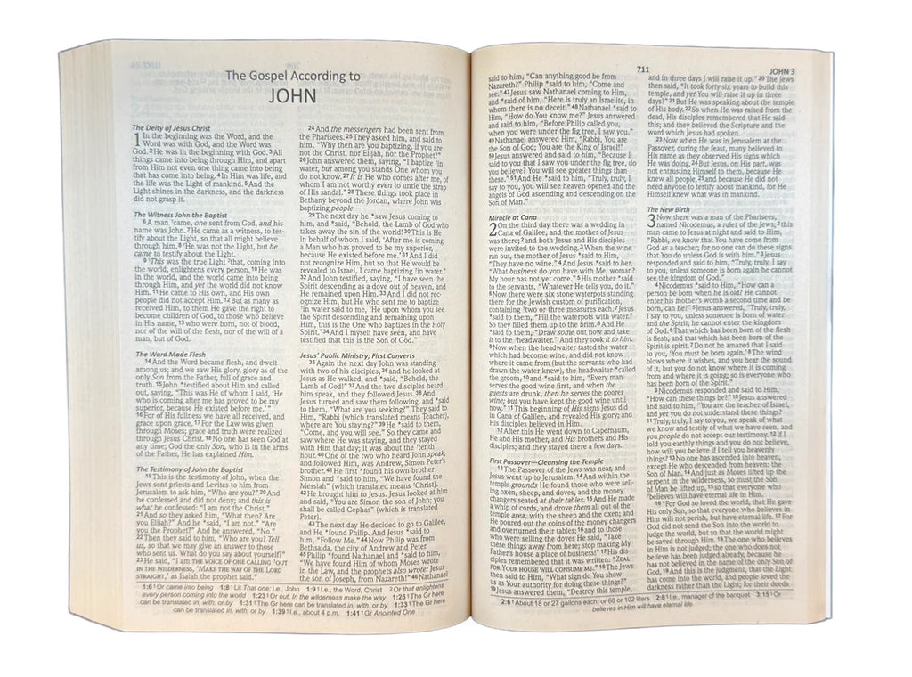 In the Back: Book introductions, Read through the Bible in a year plan, Miracles of Jesus, Parables of Jesus